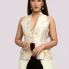 A statement in shimmer and structure, the Champagne Cascade Potli Bag is handcrafted with cascading tiers of metallic fabric. The layered ruffles create a tactile texture while the gold drawstring closure offer both elegance and function.