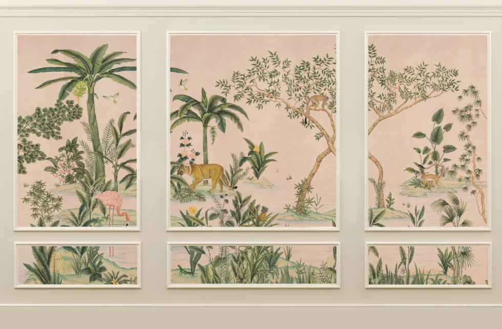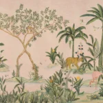 With its detailed botanical elements and gentle, earthy tones, this wallpaper is perfect for a luxury lifestyle, eco-conscious, or nature-themed website. It seamlessly blends elegance with the wild beauty of the jungle, creating an immersive and visually stunning backdrop.